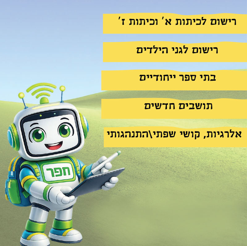 מועדי הרישום לגני הילדים ובית הספר היסודי: 19.1-8.2.26